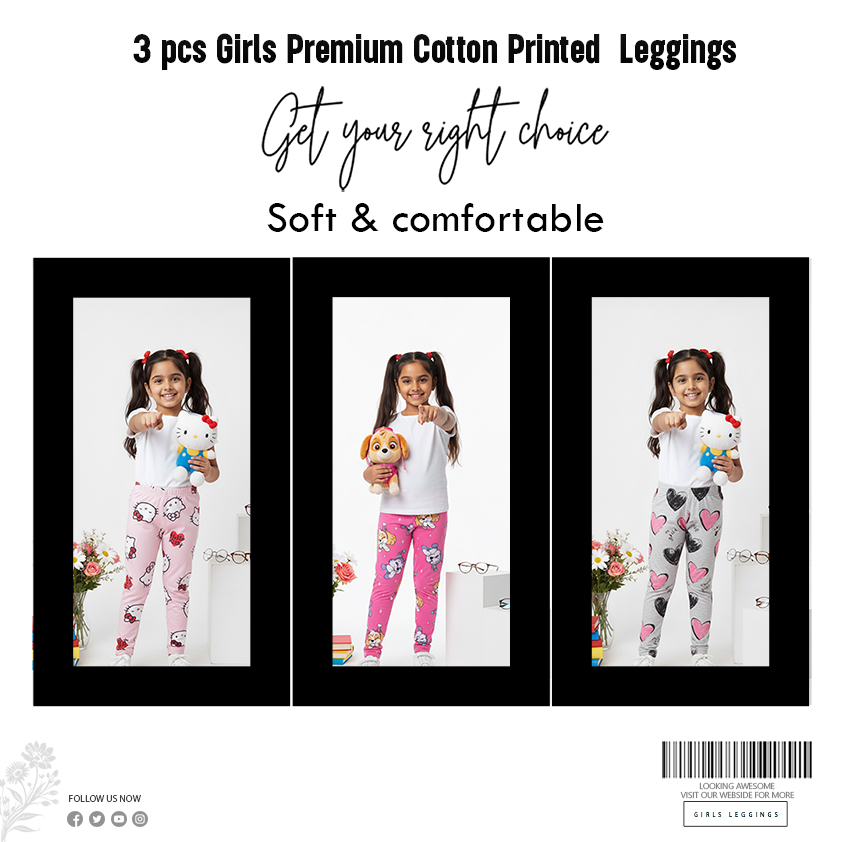 5 pcs Girls Premium Cotton Printed Leggings ( ডেলিভারি ফ্রি )